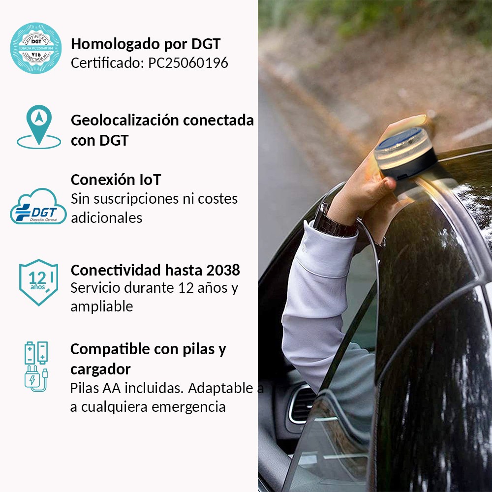 La Baliza V16 con Geolocalización será el único dispositivo legal de preseñalización de peligro. Reemplaza a los triángulos de emergencia cumpliendo con las regulaciones de seguridad vial exigidas por la DGT actuales y las que serán obligatorias a partir del 1 de enero 2026.