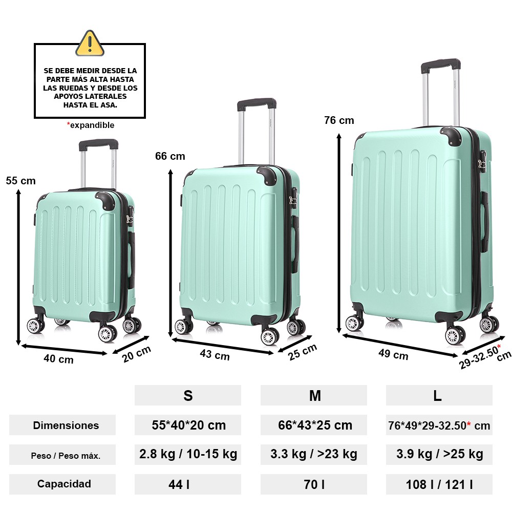 ● Maleta Mediana:66x43x25cm | Peso:3.55 kg | Litro:70L  | Material: ABS.