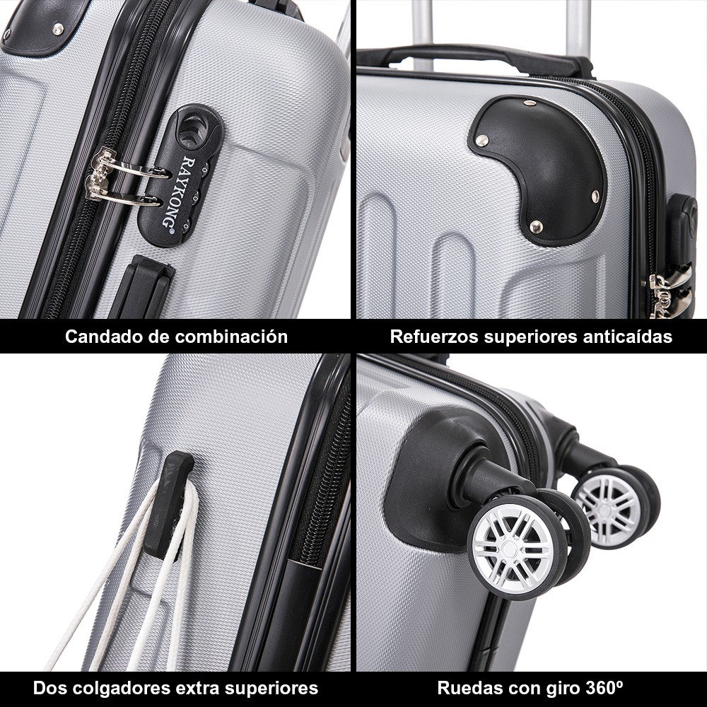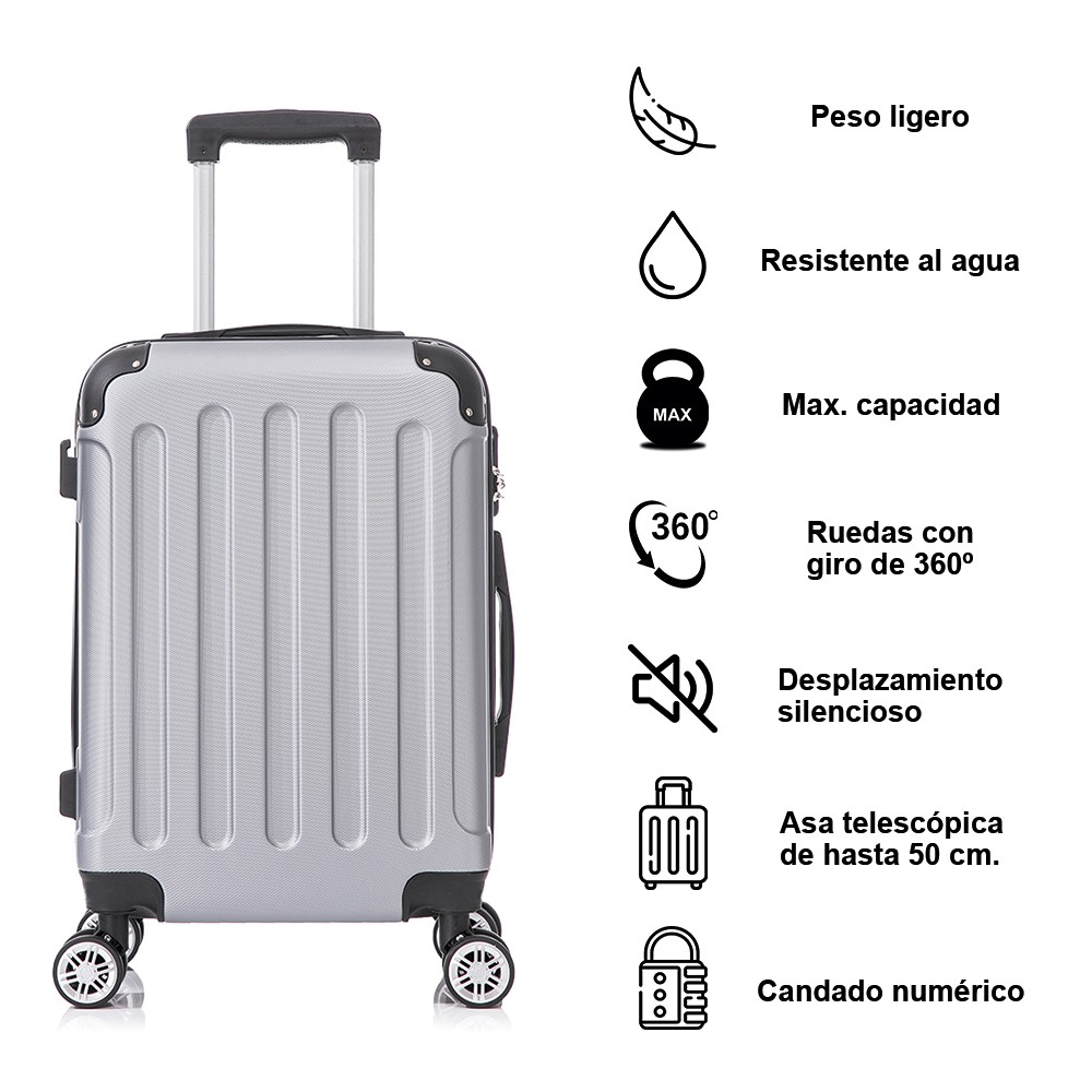 Juego de 3 Maletas ABS Cabina 55x40x20cm | Mediana 66x43x25cm| Grande 76x49x29cm - Plata