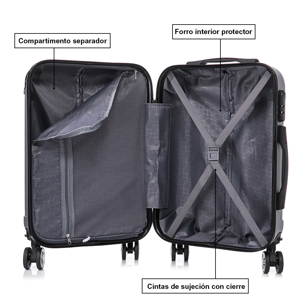 ● Maleta Mediana:66x43x25cm | Peso:3.55 kg | Litro:70L  | Material: ABS.