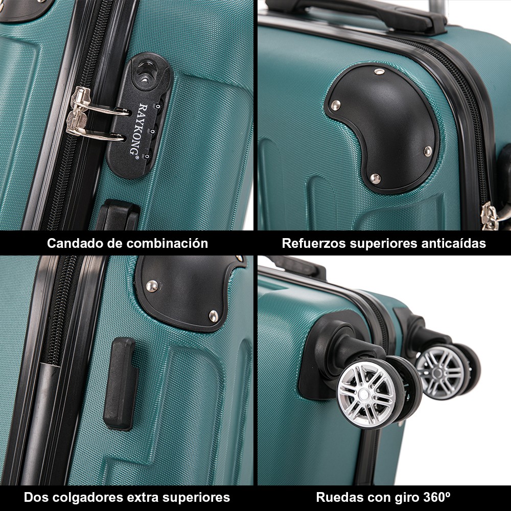 Juego de 3 Maletas ABS Cabina 55x40x20cm | Mediana 66x43x25cm| Grande 76x49x29cm - Verde