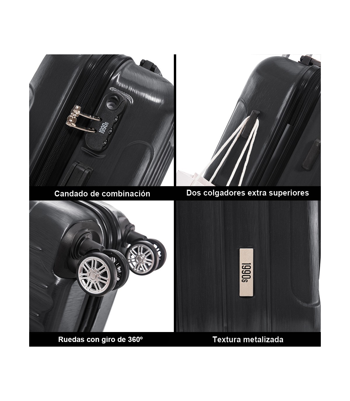 1990s Mala de cabine em policarbonato 55x40x20cm (40L) - 20 polegadas - Preto