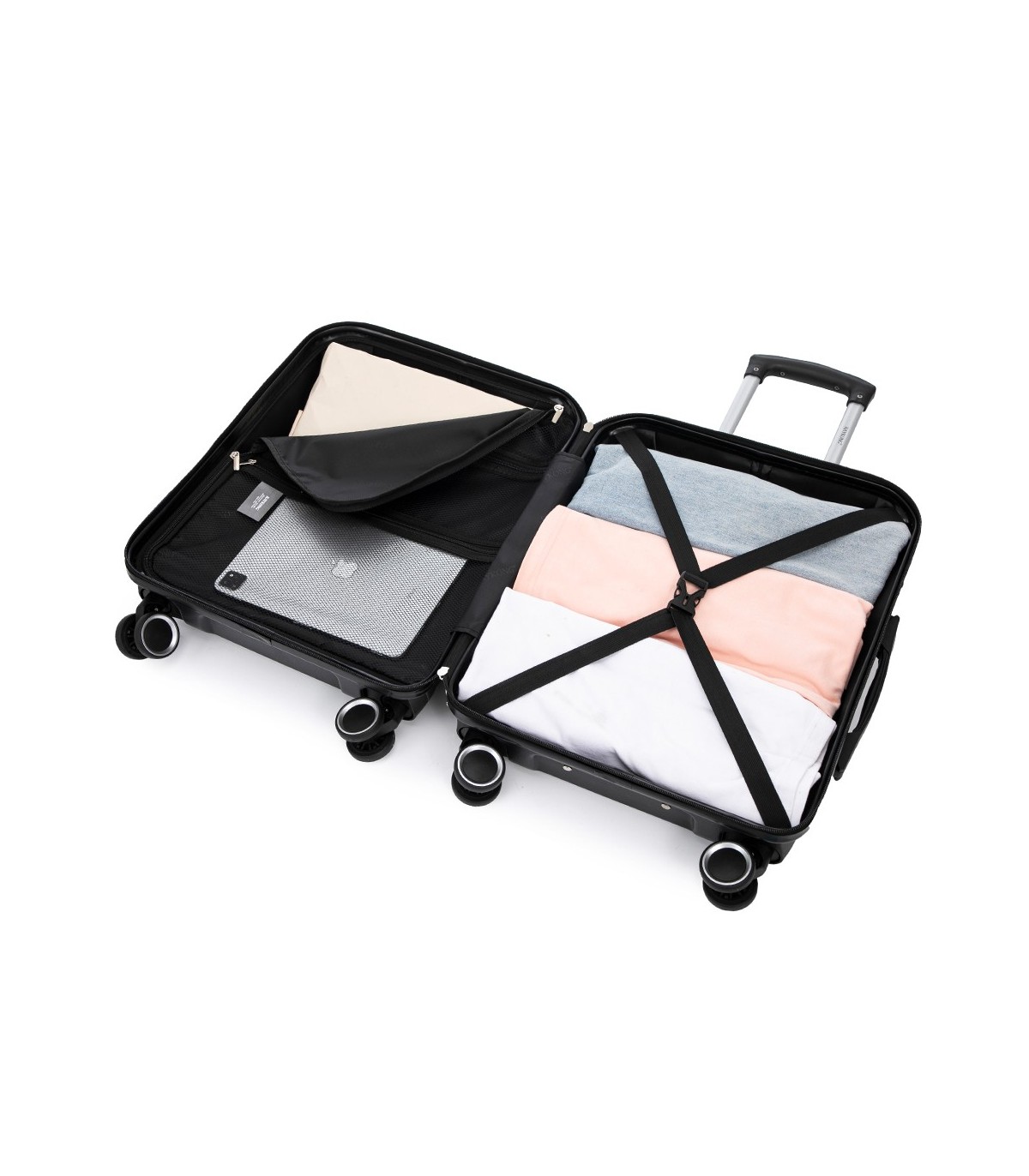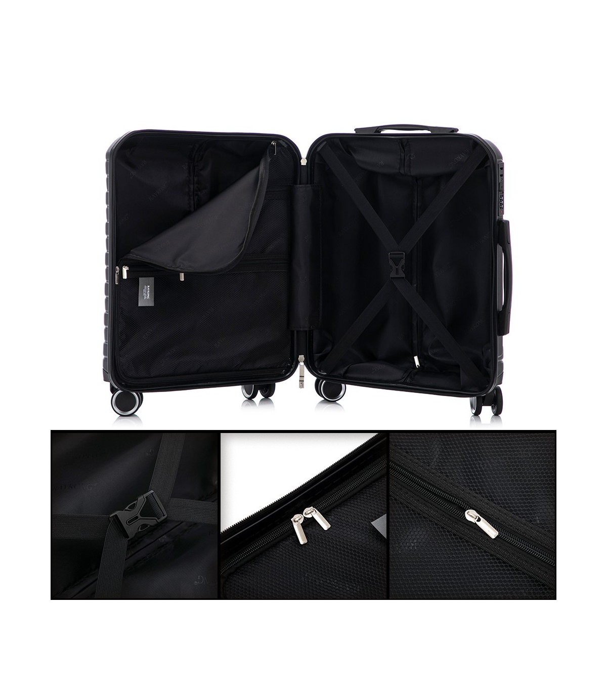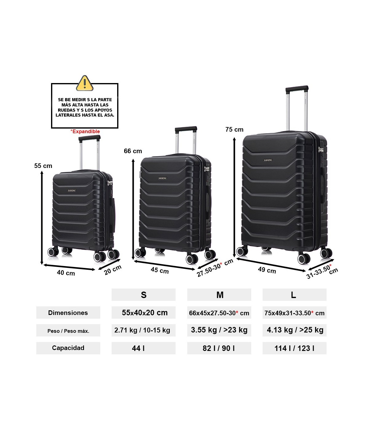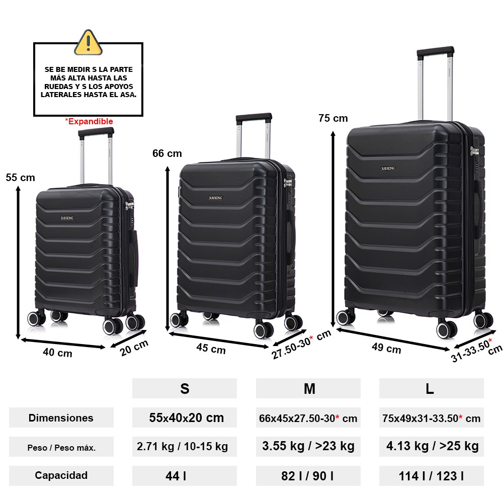 Conjunto de 3 malas de cabine ABS+PC | Mala expansível média | Mala expansível grande - Preto