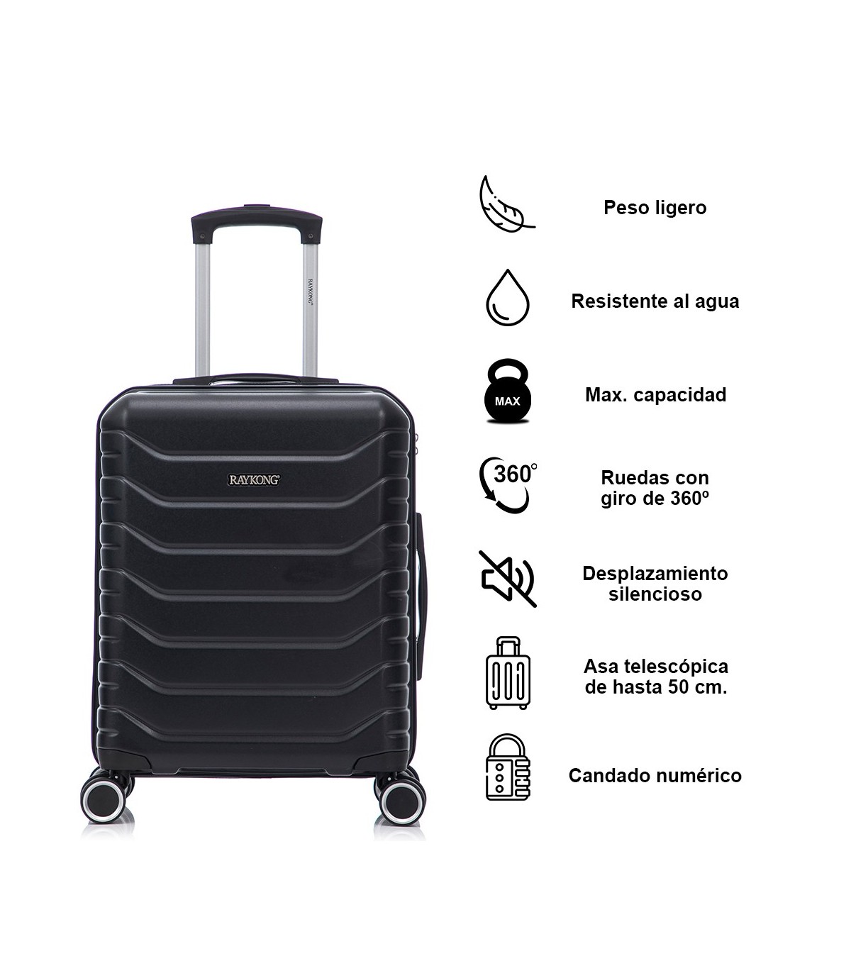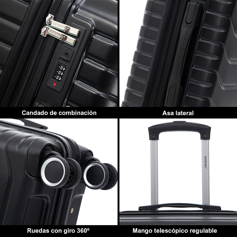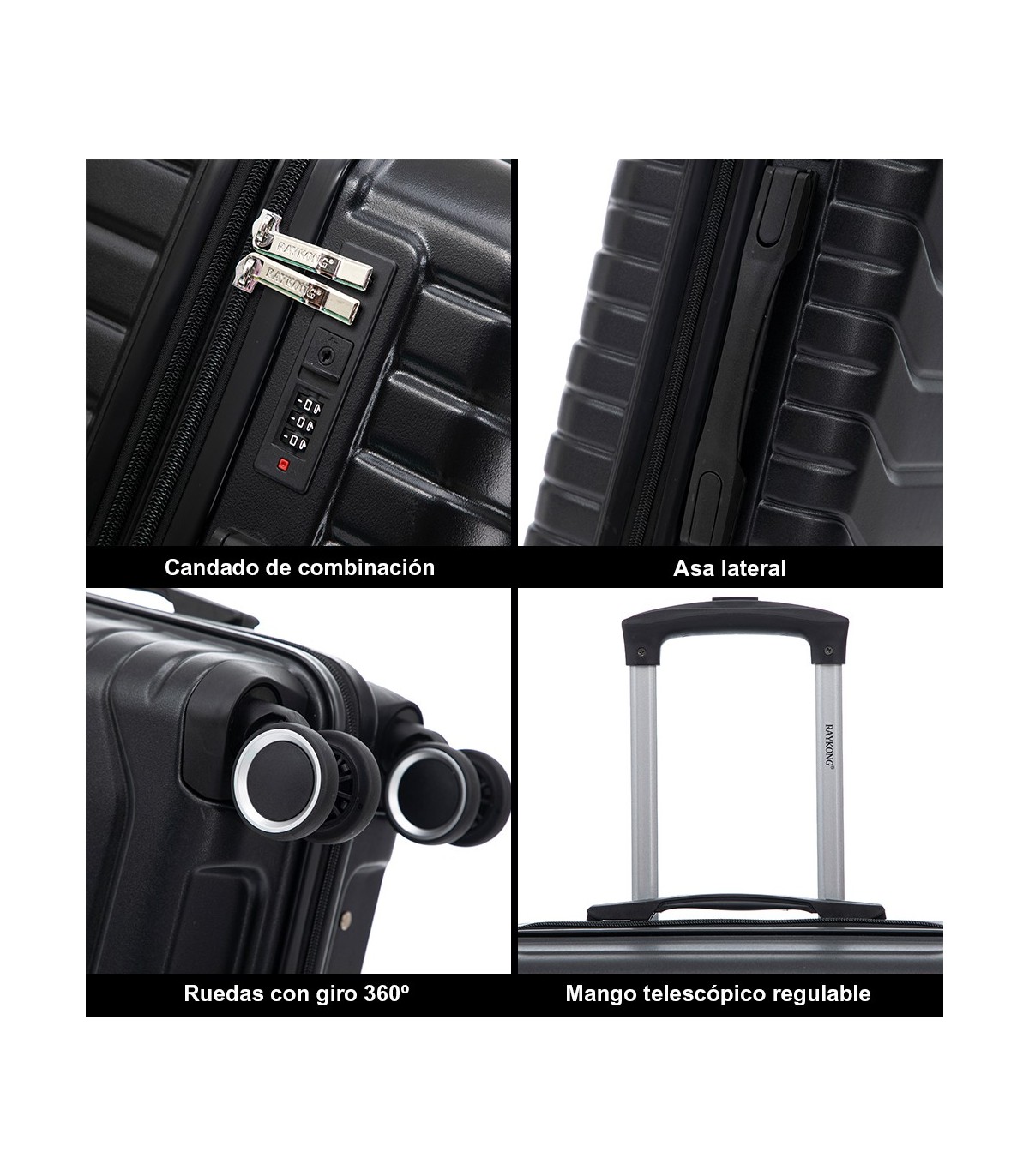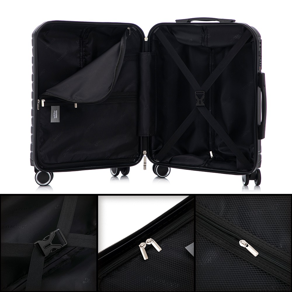 Conjunto de 3 malas de cabine ABS+PC | Mala expansível média | Mala expansível grande - Preto