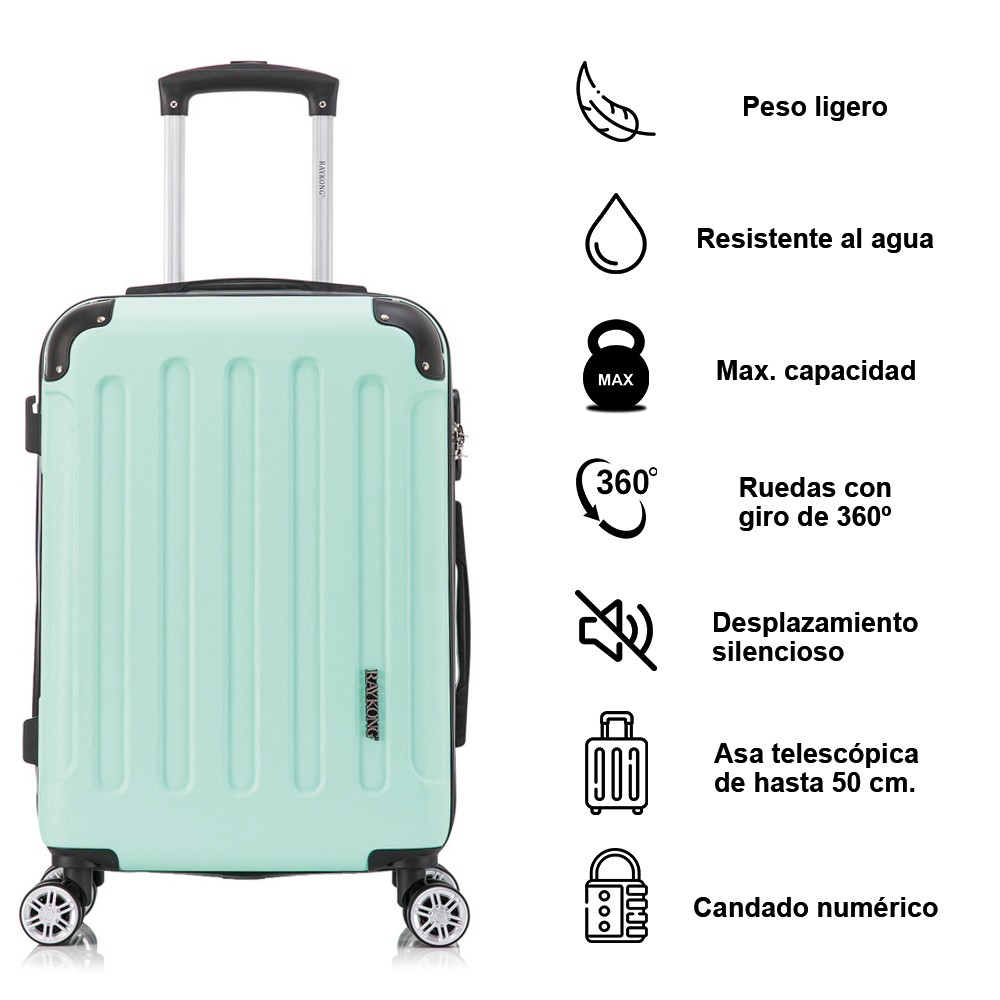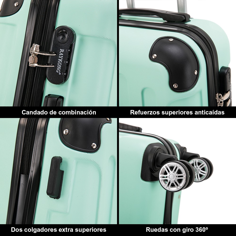 Conjunto de 3 Malas de Cabine em ABS 55x40x20cm | Média 66x43x25cm | Grande 76x49x29cm - Hortelã