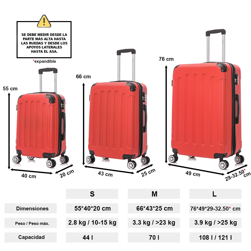 ● Mala Média: 66x43x25cm | Peso: 3,55kg | Litros: 70L | Material: ABS.
