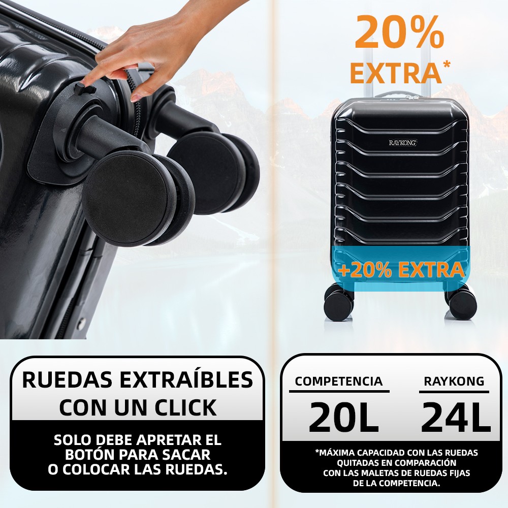 Mala de cabine em ABS 40x30x20 (24L) | Capacidade máxima com rodas amovíveis para Ryanair | Vueling - Preto